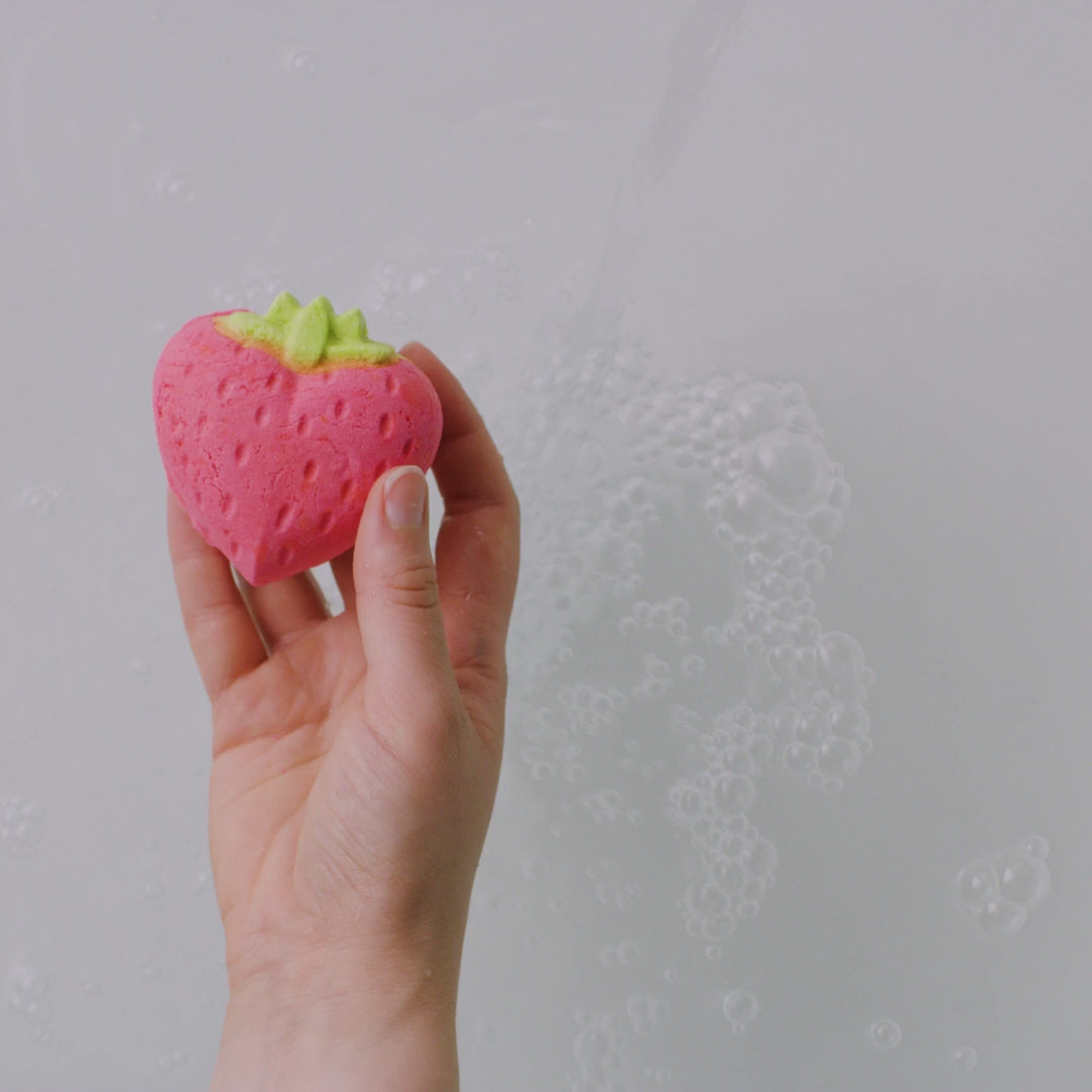 Sodium Bicarbonate, Potassium Bitartrate (vinski kamen), Sodium Laureth Sulfate, Theobroma Cacao Seed Butter (fair trade organski kakao maslac), Lauryl Betaine, Zea Mays Starch (kukuruzni škrob), Parfum, Laureth-4, Citrus Limon Peel Oil (ulje sicilijanskog limuna), Fragaria Vesca Fruit (svježe jagode), Butyrospermum Parkii Butter (shea maslac), Glycine Soja Flour (brašno sojinog zrna), Coumarin, Geraniol, *Limonene, CI 45410:1, CI 45410, CI 45410:2, CI 59040, CI 42090